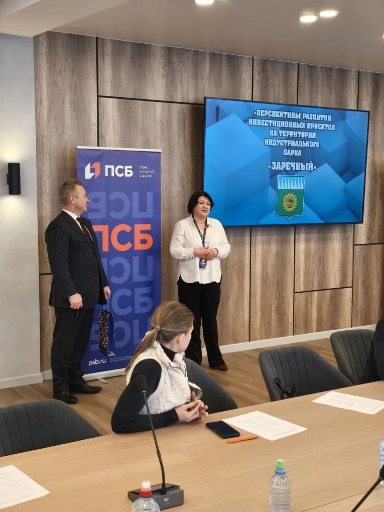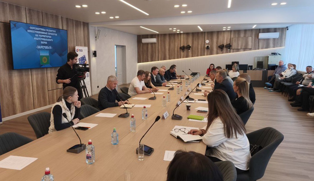 Генеральный директор Индустриального парка «Заречный» Сергей Петухов рассказал участникам встречи о направлениях развития парка и раскрыл планы по дальнейшей реализации инвестпроектов.